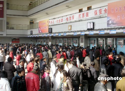 2月9日,蘇州火車站售票大廳內擠滿了排隊預購返程火車票的乘客。新的休假辦法的實行,春節(jié)后上班日期由以往的正月初八變更為初七,因此購票高峰也提前到來。當日,蘇州火車站售票大廳內人潮涌動,許多旅客紛紛提前購買返程火車票。中新社發(fā) 王建康 攝