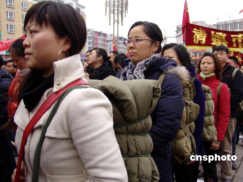 2月13日,貴州省清鎮(zhèn)市舉行“抓重建、保民生--千名機(jī)關(guān)干部走進(jìn)災(zāi)區(qū)”出征儀式。由1000多名機(jī)關(guān)干部組成的19個(gè)工作組,打著背包分赴工業(yè)、農(nóng)業(yè)、三產(chǎn)等各受災(zāi)點(diǎn),參與當(dāng)?shù)貫?zāi)后重建工作。中新社發(fā) 申時(shí)進(jìn) 攝