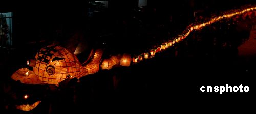 2月13日晚,在江西婺源清華鎮(zhèn)街頭,200余名農(nóng)民舞動著長近200余米的“板凳龍”。據(jù)悉,該制品由200多個(gè)花燈和上百個(gè)農(nóng)家板凳連接而成。中新社發(fā) 王國紅 攝