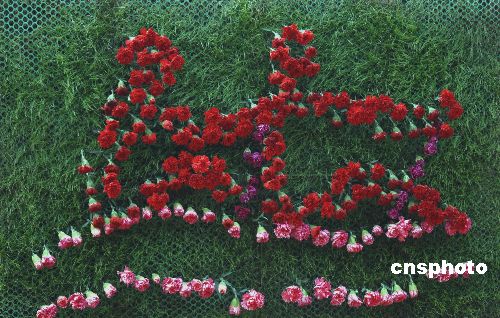 圖:數(shù)千康乃馨祝福北京奧運(yùn)