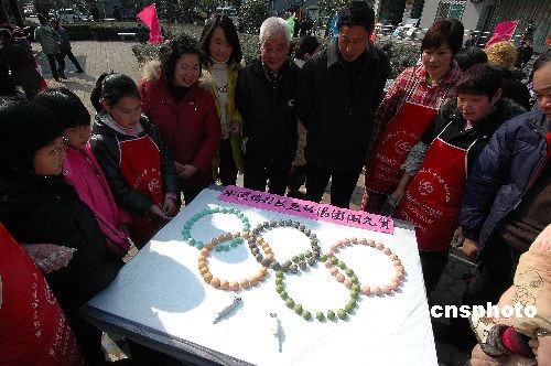 2月17日下午,“五環(huán)湯團鬧元宵”活動在杭州水澄橋社區(qū)民安苑中心花園舉行,350名社區(qū)居民紛紛前來一展身手,一起制作“五環(huán)湯團”,在喜迎元宵佳節(jié)的同時表達對北京奧運的祝福與期盼。中新社發(fā) 引煒 攝