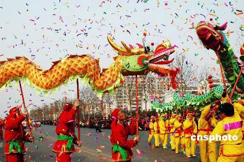 2月20日,山東淄博周村區(qū)舉行元宵節(jié)民間藝術(shù)文藝匯演,震天的鑼鼓、歡快的秧歌、威武的獅子、翻飛的龍燈以及劃旱船、抬芯子、跑竹馬等民間藝術(shù)形式一一上演,讓人們熱熱鬧鬧過(guò)元宵。中新社發(fā) 董乃德 攝