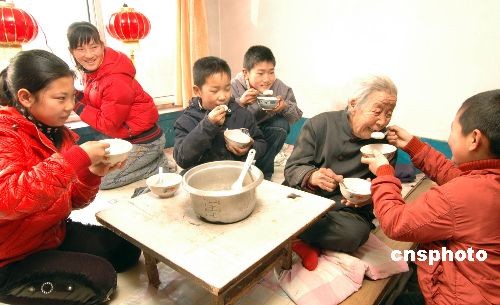 2月21日,遼寧省錦州市女兒河鄉(xiāng)中心小學(xué)少先隊(duì)員自動(dòng)組織成立了“元宵節(jié)獻(xiàn)愛心”小分隊(duì),用自己的壓歲錢買元宵深入周邊10余個(gè)村屯與32名空巢老人共慶元宵節(jié)。中新社發(fā) 李鐵成jz 攝