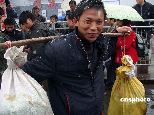 2月25日上午,湖北宜昌地區(qū)突降春雪,在火車(chē)站,數(shù)萬(wàn)名農(nóng)民工冒雪出行。中新社發(fā) 劉君鳳 攝