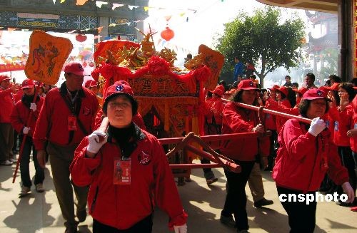 2月27日,馬祖境媽祖金身鑾駕抵達(dá)連江縣壺江島,受到當(dāng)?shù)匦疟姛崃覛g迎。據(jù)悉,此次馬祖鄉(xiāng)親二百人組團攜媽祖金身,前來參加在連江壺江舉辦的連江縣第二屆媽祖文化節(jié),這是二百多年來,馬祖境馬港天后宮媽祖金身首次回到祖鑾。中新社發(fā) 林維莉 攝