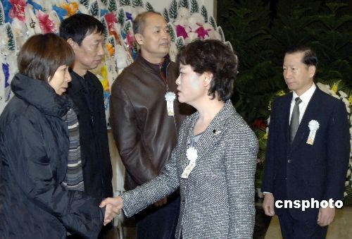 2月28日,著名作家浩然的遺體告別儀式在北京八寶山革命公墓舉行,中國作家協(xié)會(huì)主席鐵凝(右二)及作協(xié)黨組書記、副主席金炳華(右一)前往送別。浩然本名梁金廣,其代表作有文革時(shí)期發(fā)表的長篇小說《艷陽天》、《金光大道》等。中新社發(fā) 徐曦弋 攝