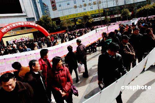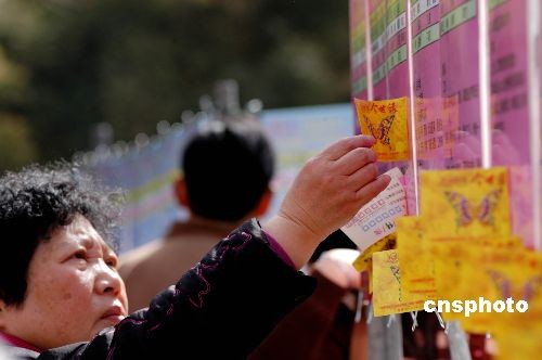 3月2日,江蘇鎮(zhèn)江市大市口廣場舉辦了“萬人相親”會(huì)活動(dòng),1000多個(gè)相親簡歷吸引了眾多市民。中新社發(fā) 陶春 攝