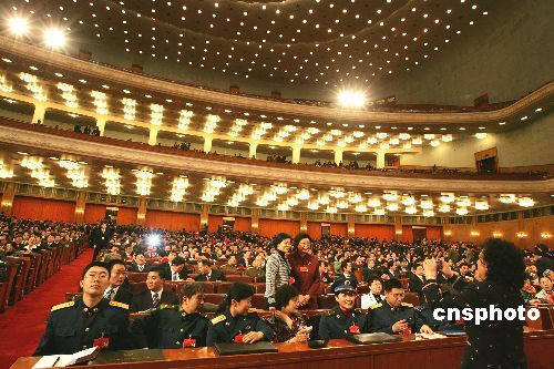 3月4日上午,第十一屆全國(guó)人民代表大會(huì)第一次會(huì)議在北京人民大會(huì)堂舉行預(yù)備會(huì)議,表決產(chǎn)生十一屆全國(guó)人大一次會(huì)議主席團(tuán)和秘書(shū)長(zhǎng),通過(guò)十一屆全國(guó)人大一次會(huì)議議程。主持會(huì)議的十屆全國(guó)人大常委會(huì)委員長(zhǎng)吳邦國(guó)宣布:十一屆全國(guó)人大一次會(huì)議于3月5日召開(kāi)。圖為會(huì)議開(kāi)始前代表抓緊時(shí)間拍照。中新社發(fā) 任晨鳴 攝