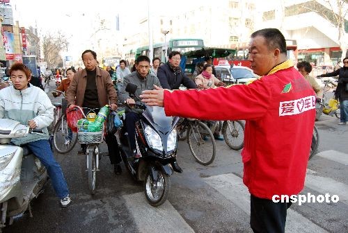 3月4日,一名交巡警對(duì)“愛心車隊(duì)”的哥進(jìn)行“崗前”培訓(xùn)。當(dāng)日,江蘇省鎮(zhèn)江市“愛心車隊(duì)”的哥的姐,來到該市京口區(qū)道口“客串”交巡警。他們通過崗位執(zhí)勤、發(fā)放宣傳資料等形式,用實(shí)實(shí)在在的角色轉(zhuǎn)換與體驗(yàn),進(jìn)一步增強(qiáng)維護(hù)道路交通安全和良好交通秩序的自覺性。中新社發(fā) 汪永祥 攝
