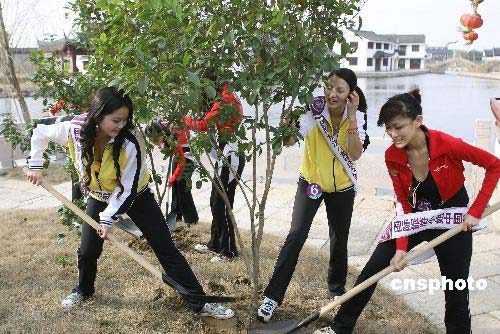 3月12日植樹節(jié),參加2008國際旅游小姐中國總決賽的30多名選手,在浙江古鎮(zhèn)西塘開展了植樹活動,姑娘們開心地種上一棵棵桂花樹,增強了綠色環(huán)保意識。2008國際旅游小姐中國總決賽晚會將于3月15日舉行,產(chǎn)生的冠軍將代表中國參加全球總決賽。中新社發(fā) 劉鷹 攝
