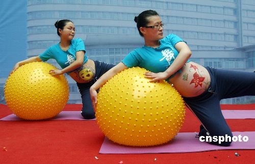 3月15日,眾多準(zhǔn)媽媽和在江蘇連云港市第一人民醫(yī)院展示母子康樂保健帶來的樂趣。經(jīng)過孕婦學(xué)校、孕媽咪沙龍、體功訓(xùn)練等孕前培訓(xùn)的準(zhǔn)媽媽大膽地在舞臺(tái)上舞動(dòng)身姿表演孕前保健操。中新社發(fā) 王健民 攝