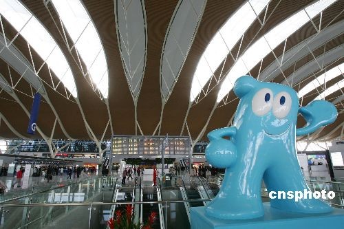 3月26日,上海浦東國(guó)際機(jī)場(chǎng)2號(hào)航站樓(T2)正式投入運(yùn)營(yíng)。首批15家國(guó)內(nèi)外航空公司從即日起開始在T2迎來送往。新建的2號(hào)航站樓總建筑面積54.6萬平方米,近2倍于1號(hào)航站樓。浦東機(jī)場(chǎng)以此進(jìn)入了2座航站樓、3條跑道同時(shí)運(yùn)營(yíng)的新時(shí)代。預(yù)計(jì)到2010年,上海的機(jī)場(chǎng)吞吐客流量將達(dá)到近9000萬人次,其中虹橋機(jī)場(chǎng)承擔(dān)3000萬人次,浦東機(jī)場(chǎng)承擔(dān)近6000萬人次。中新社發(fā) 湯彥俊 攝