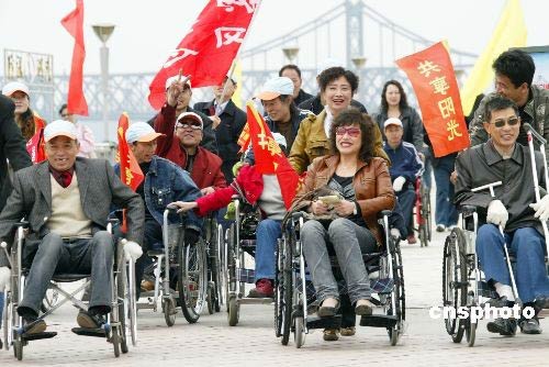 4月6日,來自遼寧丹東社會各界市民和韓國的徒步愛好者齊聚鴨綠江邊,參加由市體育局和旅游局共同舉辦的千人徒步踏青活動。共有2100名中韓徒步愛好者和市民沿鴨綠江大道步行20公里,其中年齡最大的80歲,最小的只有兩歲,部分殘疾人也參與到了這項全民活動中。作為鴨綠江第三界中韓友誼徒步節(jié),活動不僅倡導(dǎo)全民健身,更增進中韓兩國人民友誼。中新社發(fā) 陳浩浩 攝