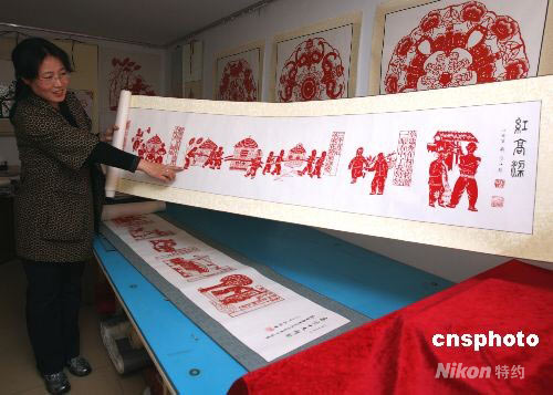 圖:剪紙作品再現(xiàn)莫言代表作《紅高粱》