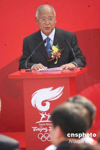 圖:奧運(yùn)圣火在澳門傳遞 何振梁致詞