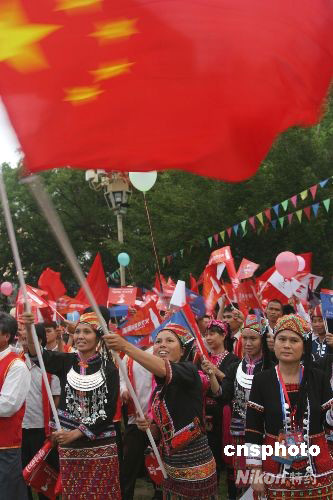 圖:海南黎族人民喜迎北京奧運(yùn)圣火
