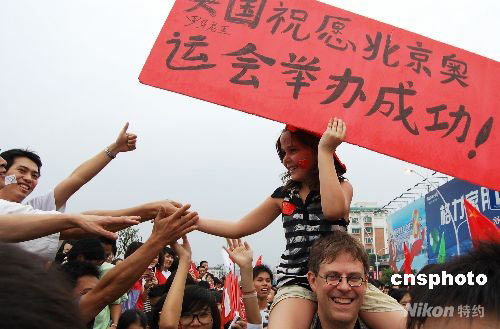 圖:外國小姑娘成為汕頭圣火傳遞明星