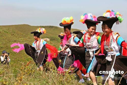 5月11日,是貴陽市苗族同胞農(nóng)歷“四月八”的傳統(tǒng)節(jié)日。貴陽市數(shù)千苗族同胞身著節(jié)日盛裝,聚集在貴陽市花溪區(qū)高坡鄉(xiāng)云頂村草場(chǎng)載歌載舞,歡慶一年一度的苗族節(jié)日。小伙子們吹起歡快的蘆笙,姑娘們跳起苗族的花綢舞,盡情的對(duì)歌談心,祈求今年風(fēng)調(diào)雨順,五谷豐登。中新社發(fā) 彭年 攝