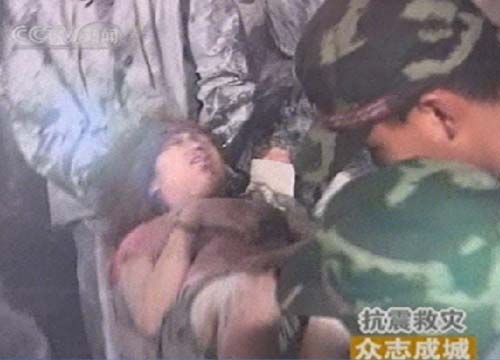 圖:都江堰一居民樓成功解救四名生還者