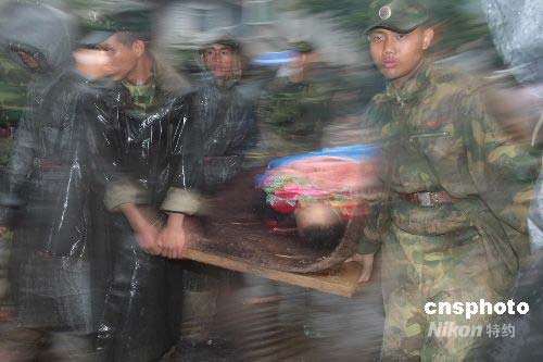 圖:四川汶川地震中國士兵震區(qū)救援