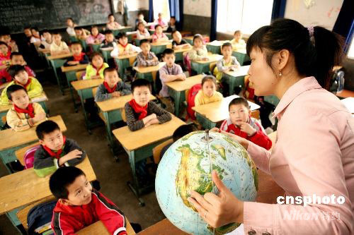 5月15日上午,四川華鎣市雙河二小的學(xué)生在聽取老師講解地球知識(shí)。當(dāng)日,在四川省汶川5.12持大地震災(zāi)害中波及受災(zāi)、己停課兩天半的華鎣市,經(jīng)嚴(yán)格檢查鑒定符合安全要求的學(xué)校全面復(fù)課,并向?qū)W生傳授地球和震災(zāi)避險(xiǎn)自救知識(shí),提高其自我保護(hù)能力。中新社發(fā) 邱海鷹 攝