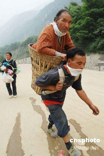 圖:北川地震災(zāi)民撤往安全地帶