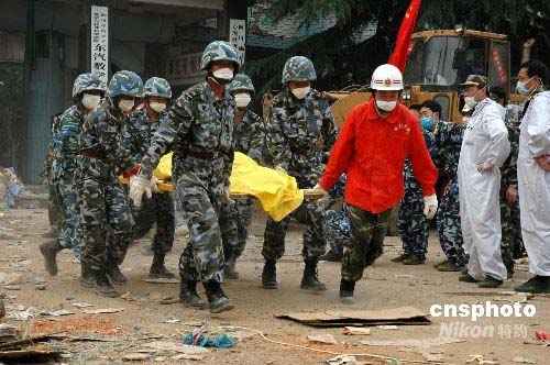 圖:海軍陸戰(zhàn)隊(duì)官兵在綿竹災(zāi)區(qū)展開搜救