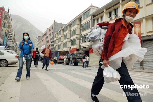 汶川地震災區(qū)縣城自受災以來大小店鋪關門,受災民眾情緒穩(wěn)定、社會秩序良好。