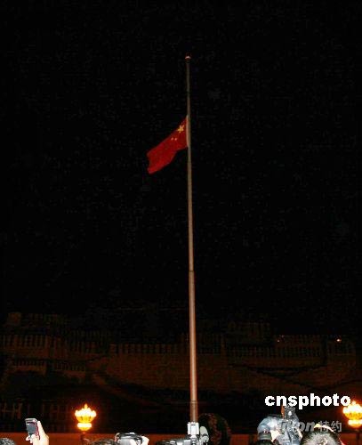 五月十九日凌晨零點時分,西藏自治區(qū)在布達拉宮廣場舉行降半旗儀式,向“五·一二”四川大地震死難同胞致哀,此舉為新中國成立以來,布達拉宮廣場首次為死難普通民眾降半旗。中新社發(fā) 柳俊武 攝