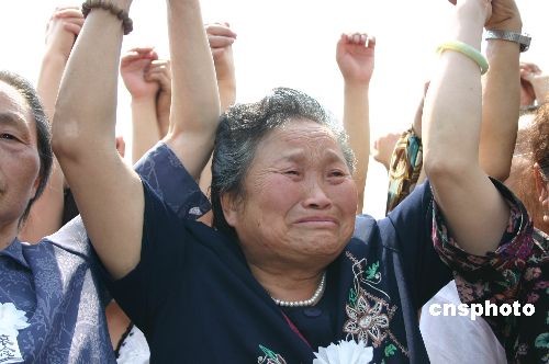 5月19日下午,成都數(shù)萬(wàn)民眾在天府廣場(chǎng)振臂高呼“同胞,走好!”“四川,雄起!”“中國(guó),加油!”,放聲表達(dá)對(duì)汶川地震遇難同胞的哀悼,為四川和中國(guó)抗震救災(zāi)加油。中新社發(fā) 魏姝 攝