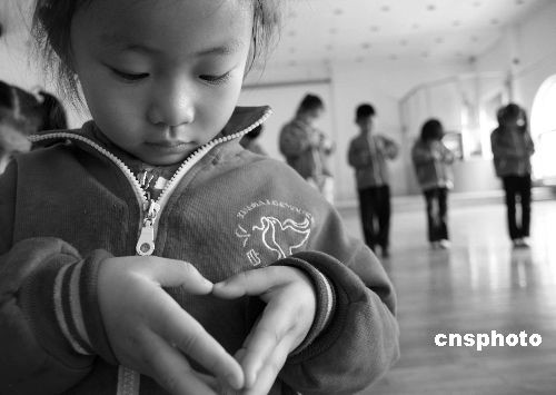 5月19日是國(guó)務(wù)院公布的全國(guó)哀悼日的第一天。當(dāng)日14點(diǎn)28分,山東省濱州市小白鴿幼兒園的22名小朋友在老師的指導(dǎo)下,圍成了“愛國(guó)心”圖案。與此同時(shí),這22名小朋友們還用稚嫩的小手?jǐn)[出了“愛國(guó)心”手勢(shì),并在哀樂聲中默哀3分鐘,以表達(dá)他們對(duì)四川汶川大地震遇難者的哀思之情。中新社發(fā) 郭志華 攝