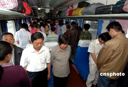 五月十九日十四時二十八分,福州開往青島四方的K68次列車上,乘客一齊起立為四川汶川大地震遇難同胞默哀。這趟列車按運行時刻表剛好在此時發(fā)車,由于正值舉國默哀之際,特意推遲三分鐘發(fā)車。中新社發(fā) 王東明 攝