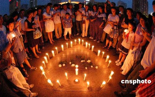 5月19日晚,新疆巴音郭楞蒙古自治州(簡(jiǎn)稱(chēng)巴州)團(tuán)委在新疆庫(kù)爾勒市人民廣場(chǎng)舉辦共青團(tuán)員“點(diǎn)燃蠟燭、寄托對(duì)汶川大地震遇難同胞的哀思”活動(dòng),為汶川地震遇難同胞默哀。中新社發(fā) 確·胡熱 攝