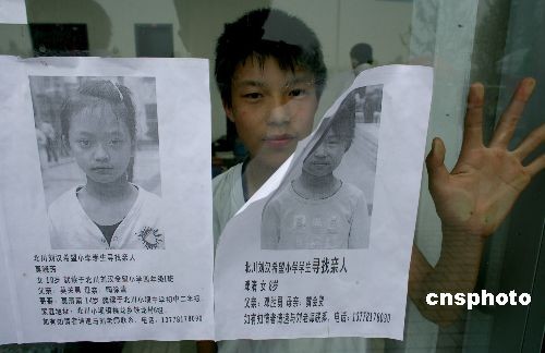 圖:北川小學(xué)生貼自己照片尋找父母