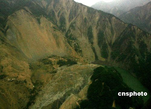 圖:汶川地震大山崩塌形成危險的堰塞湖