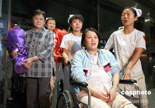 5月27日晚,四川大地震重災(zāi)區(qū)都江堰市被困50小時孕婦張小艷與父母乘飛機安全抵達烏魯木齊市,該市婦幼保健院派專人前往機場迎接,并將張小艷接入醫(yī)院免費接生。據(jù)了解,地震發(fā)生時,已有8個月身孕的張小艷和母親被掉落的天花板壓住被困50個小時,救援人員發(fā)現(xiàn)后對其實施救援,母子平安奇跡般生還。中新社發(fā) 劉新 攝