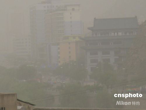 5月29日凌晨,蘭州發(fā)生沙塵暴,能見度不到200米,這是蘭州今年第4次發(fā)生沙塵暴。圖為蘭州金城關(guān)至龍園被灰蒙蒙的沙塵暴籠罩。中新社發(fā) 張玉璽 攝