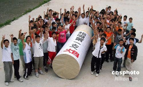 5月31日,安徽淮北市桓譚中學(xué)的學(xué)生們制作了一支巨型“香煙”模型。全校700多名學(xué)生在這支寫有“拒吸第一支煙”的模型上簽名,立志遠(yuǎn)離煙草。 2008年5月31日是世界衛(wèi)生組織發(fā)起的第21個(gè)世界無煙日。本次無煙日的主題是“無煙青少年”,口號(hào)是“禁止煙草廣告和促銷,確保無煙青春好年華”。中新社發(fā) 李博 李春輝 攝