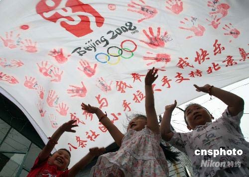 圖:北京市民迎接奧運(yùn)會倒計(jì)時50天