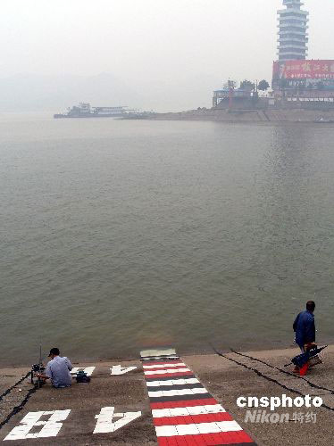 2008年6月17日,進入2008年汛期的長江三峽入庫流量首次突破20000立方米/秒,達到20500立方米/秒;葛洲壩出庫流量達20200立方米/秒,長江中游湖北宜昌水位漲至46.11米,與6月15日相比,水位上漲約1米。據(jù)長江航道局稱,近期長江干流水位持續(xù)上漲,為確保長江航道安全暢通,長江航道局加強了汛期航道維護工作。中新社發(fā) 劉君鳳 攝