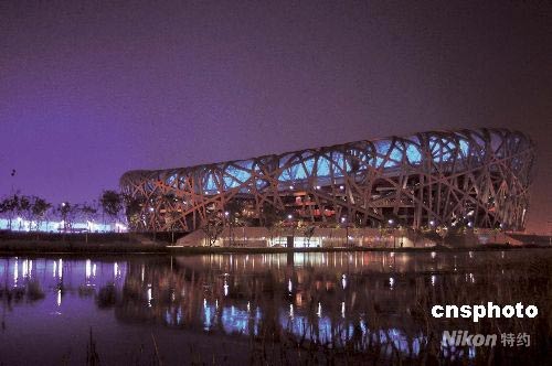 奧運(yùn)離中國國人越來越近,6月下旬,奧運(yùn)主要場館——“鳥巢”因加緊調(diào)試燈光系統(tǒng)而停止外部的照明,但加緊開幕式排演的燈光卻要亮到深夜。 中新社發(fā) 楊佐桓 攝