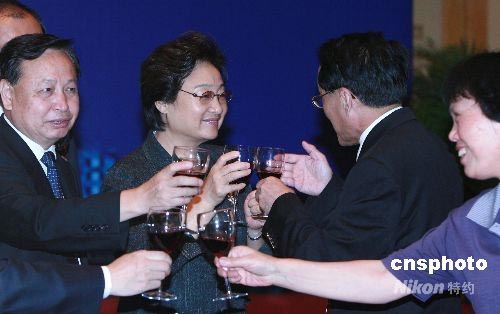 6月27日晚,“2008年華僑華人創(chuàng)業(yè)發(fā)展洽談會(huì)”歡迎宴會(huì)在湖北省武漢市舉行。中國(guó)國(guó)務(wù)院僑務(wù)辦公室主任李海峰出席歡迎宴會(huì)并向參會(huì)代表祝酒致意。中新社發(fā) 廖文靜 攝