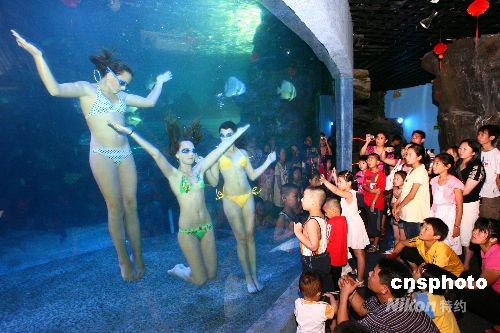 6月27日開(kāi)始,福州左海海底世界再次邀請(qǐng)俄羅斯水中運(yùn)動(dòng)員前來(lái)表演,他們向市民們展示富有世界盛名的花樣游泳——水下芭蕾,促進(jìn)市民們更加關(guān)注奧運(yùn)賽事。據(jù)介紹,本次表演隊(duì)來(lái)自俄羅斯遠(yuǎn)東奧林匹克運(yùn)動(dòng)中心,她們年齡在14-20歲,是專業(yè)的花樣游泳運(yùn)動(dòng)員,從四歲起就進(jìn)行了形體、舞蹈、體操芭蕾等方面的專業(yè)訓(xùn)練,曾榮獲俄羅斯花樣游泳錦標(biāo)賽青少年組第二名。 在左海海底隧道大鯊魚(yú)展池中,俄羅斯姑娘們不帶任何潛水裝備,憑著自己高超的水中技能,共同完成一個(gè)又一個(gè)高難度的動(dòng)作,綻放的石榴花、佛座蓮花、芙蓉盛開(kāi)、穿梭時(shí)空、南海觀音、轉(zhuǎn)體720度等形體造型定變幻多姿,精彩絕倫。中新社發(fā) 祝敏松 攝