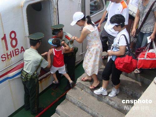 浙江省氣象臺(tái)7月17日上午發(fā)布臺(tái)風(fēng)警報(bào),第7號(hào)熱帶風(fēng)暴“海鷗”8時(shí)已加強(qiáng)為臺(tái)風(fēng),位于溫州東南偏南650公里處,未來(lái)強(qiáng)度將逐漸增強(qiáng),將對(duì)浙江沿海地區(qū)造成較為嚴(yán)重的影響。面對(duì)來(lái)勢(shì)洶洶的臺(tái)風(fēng)“海鷗”,溫州市邊防支隊(duì)南麂邊防派出所立即啟動(dòng)防臺(tái)工作預(yù)案,會(huì)同當(dāng)?shù)劓?zhèn)政府迅速做好南麂島游客的疏散撤離工作。截止7月17日13時(shí),南麂島上的600余名游客已經(jīng)安全撤離。中新社發(fā) 吳水斌 攝