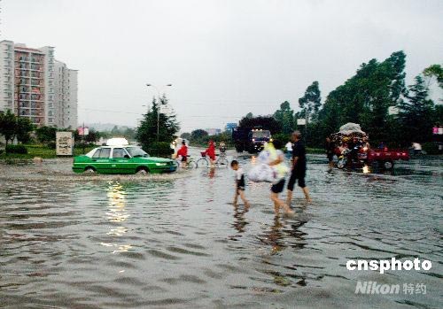 7月20日傍晚,四川眉山市遭受強(qiáng)暴雨襲擊。眉山市主城區(qū)兩小時(shí)內(nèi)的降雨量達(dá)到151毫米,造成城區(qū)多處內(nèi)澇。中新社發(fā) 堯遙 攝