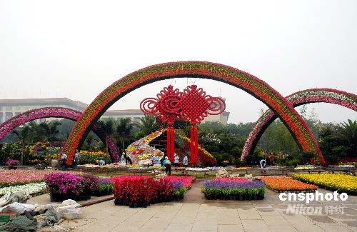 7月25日,北京天安門廣場西側以彩虹門和中國結的組合造型花壇亮相,具有獨特的中國風味,吸引眾多游客。據了解,今年天安門廣場花壇創(chuàng)下歷年之最,持續(xù)時間最長,花材用料最多,達到100萬盆,80余種。中新社發(fā) 張雙雙 攝