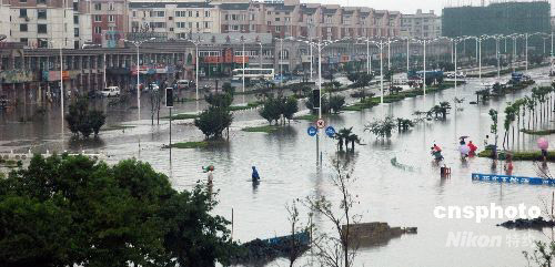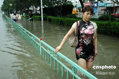 2008年7月31日20時起,受今年第8號臺風(fēng) “鳳凰”外圍的云系和風(fēng)力影響,“鳳凰”雨襲擊安徽巢湖市。至8月1日15時,“鳳凰”雨狂襲安徽巢湖市城區(qū),降雨量已超過240mm以上,造成市內(nèi)多處低洼地段發(fā)生嚴(yán)重內(nèi)澇,部分街道成了一片汪洋,大部分路段被水淹沒,進(jìn)入市區(qū)的高速路口因積水過深臨時封閉,給群眾出行和生活帶來了很大影響。此次長時間的強(qiáng)降水,給該市城區(qū)防洪排水帶來壓力。中新社發(fā) 徐振華 攝