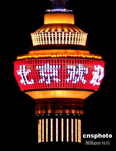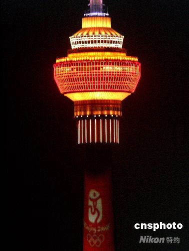 8月1日晚,北京中央電視塔奧運主題夜景燈光以“燈籠”造型為主體,將405米高的世界高塔裝扮得美輪美奐,無比壯觀,成為京西一道綺麗奪目的風(fēng)景。中新社發(fā) 趙振清 攝