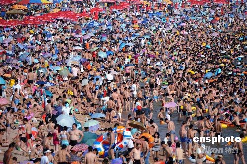 圖:青島海水浴場游人破十萬 創(chuàng)今夏紀錄