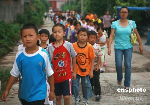 8月25日,來自四川省汶川縣銀杏鄉(xiāng)銀杏小學(xué)和威州鎮(zhèn)七盤溝小學(xué)380名學(xué)生在四川丹棱縣正式復(fù)課。兩所學(xué)校的師生將在當(dāng)?shù)乜鞓飞顚W(xué)習(xí)3年。地震發(fā)生后,汶川縣銀杏和七盤溝小學(xué)校園遭到嚴(yán)重毀毀,眉山市華川中等職業(yè)學(xué)校無償為災(zāi)區(qū)的孩子們提供了4000多平方米的教學(xué)場所。中新社發(fā) 劉忠俊 攝